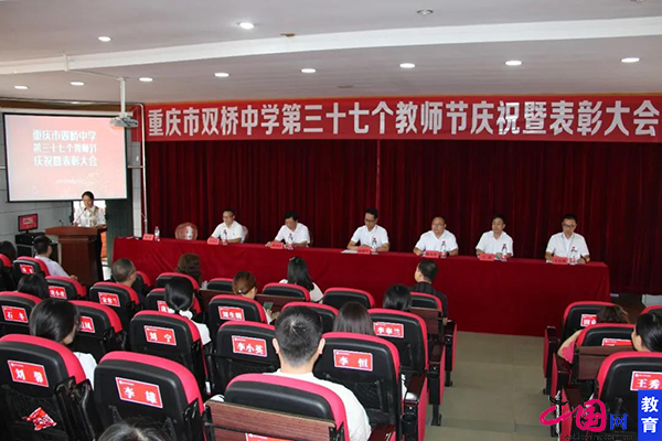9月10日下午,重庆市双桥中学领导班子及全体教职工齐聚学术报告厅和阶梯会议室,举行第37个教师节庆祝暨表彰大会,表彰先进,凝心聚力。