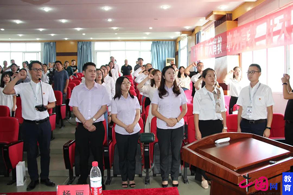 所有新教师在杨校长带领下庄严宣誓,他们用铿锵有力的声音许下庄严承诺,表示今后将用实际行动践行教育初心和使命,为教育事业奉献全部智慧与力量,让青春之花绽放在教育的征程上。