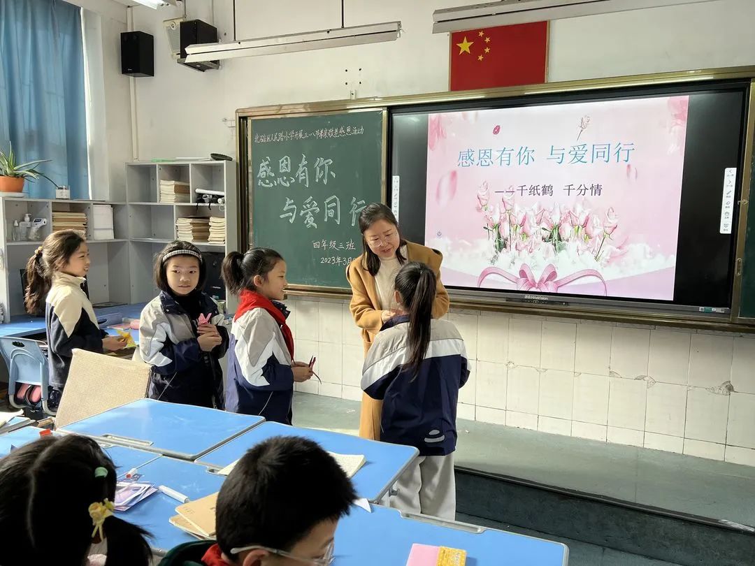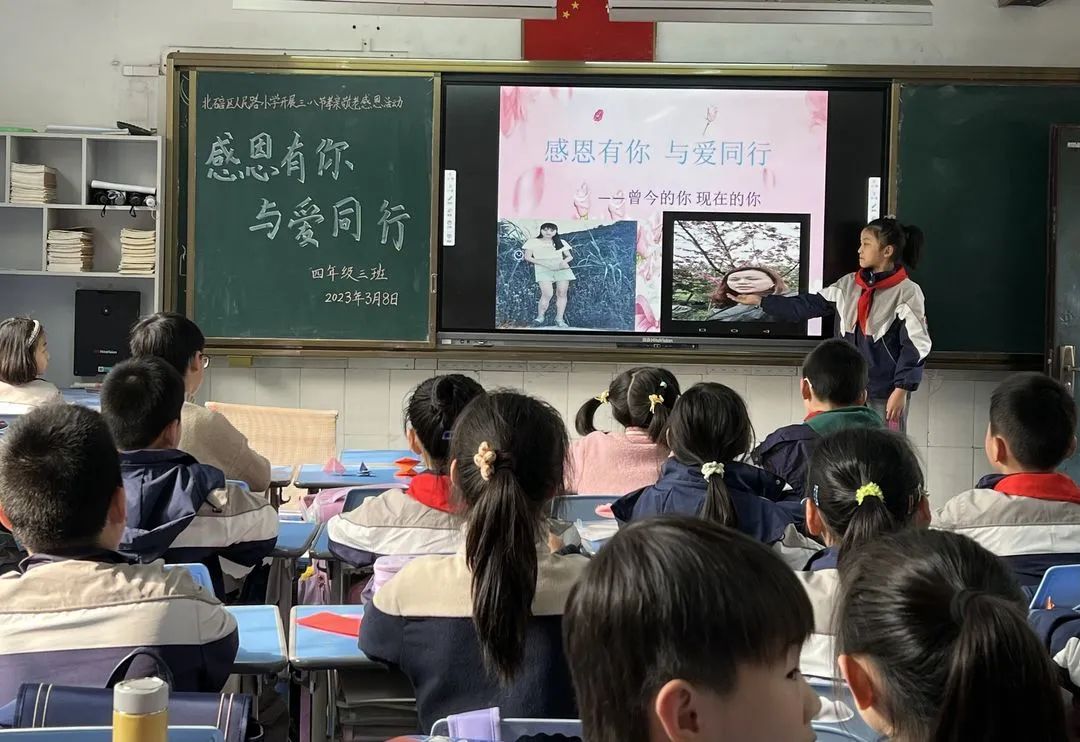 学会感恩也是践行雷锋精神的一种具体体现。各班结合三八妇女节开展了“感恩有你 与爱同行”的主题教育活动。一、二、三年级为辛苦的妈妈捶背、送拥抱,感谢妈妈的辛苦付出;四、五、六年级通过主题班会观看感恩视频、谈话互动、讲感恩故事、制作感恩卡、手抄报等方式,让学生懂得关注身边所有美好、所有应该感谢的人和事,用一颗感恩的心面对生活。