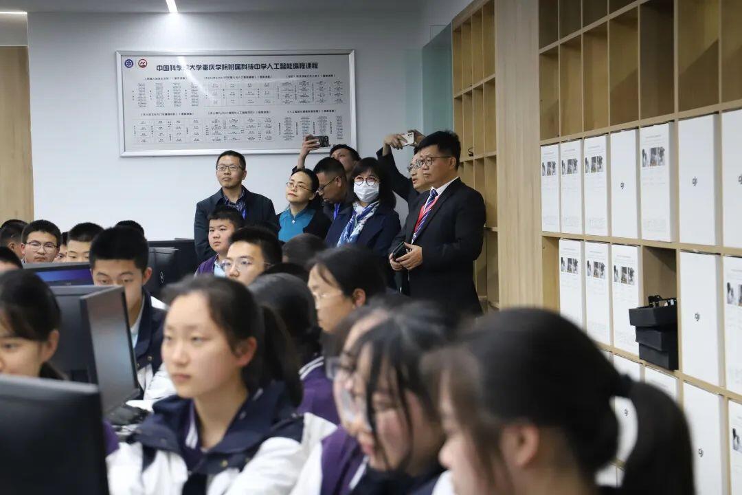 随后,来访代表和嘉宾们走进该校西部科创中心,在吕鹏宇主任的带领下,对人工智能创客实验室、AI+VR/AR探究实验室和人工智能操作体验馆进行了解和体验,并对学校在培养中学生创新精神与实践能力,深层次促进学生全面发展,和推动教育均衡化方面所展现出的责任与担当表示称赞。