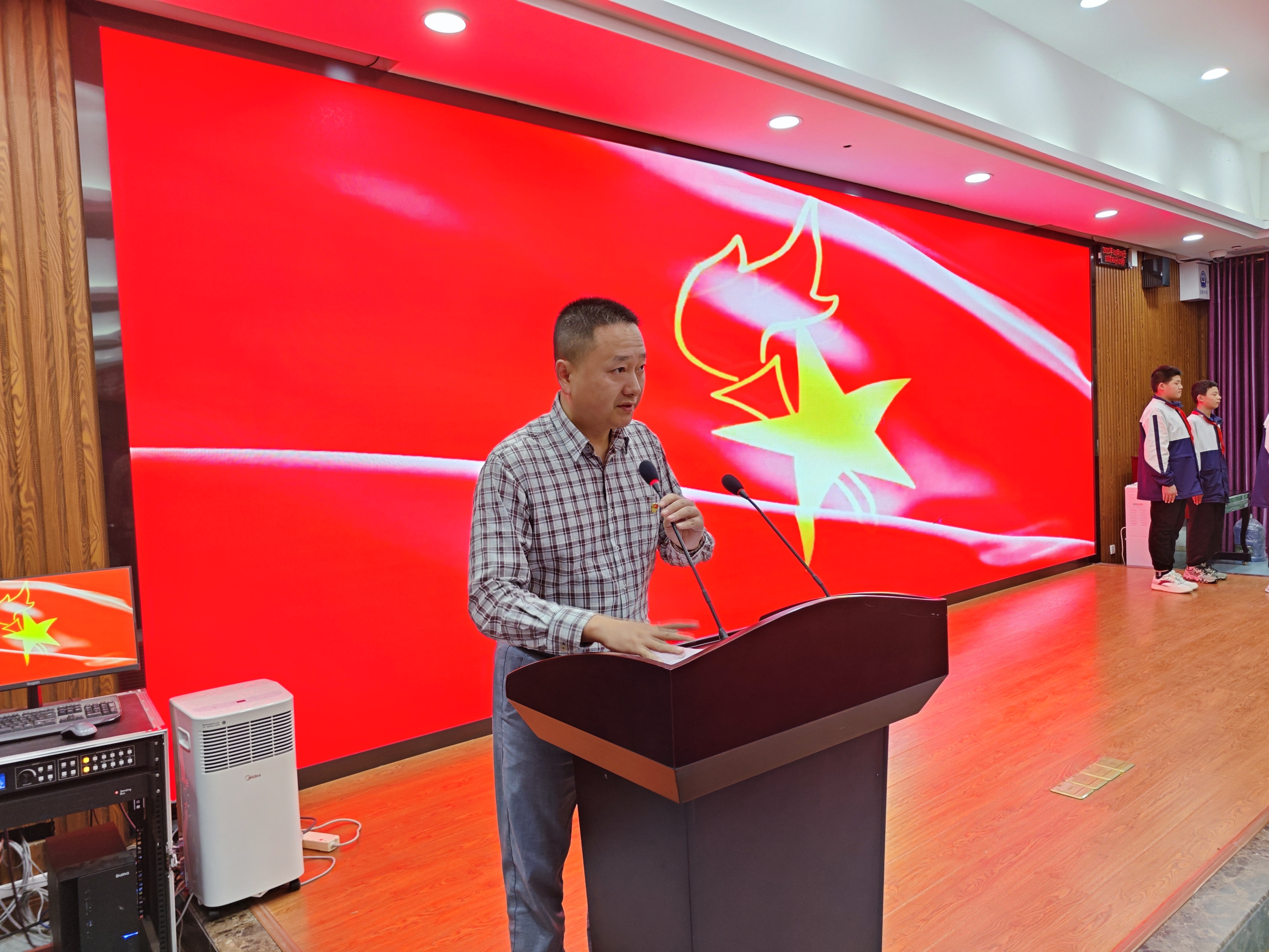 王益副校长对新加入初一级少先队的同学们表示衷心的祝贺!并希望同学们勤奋学习, 快乐生活,全面发展;不辜负师长们殷切期望,不辜负自己美好的学生时光,今天做学习的主人,明天成为祖国的栋梁,让“星星火炬,代代相传”。
