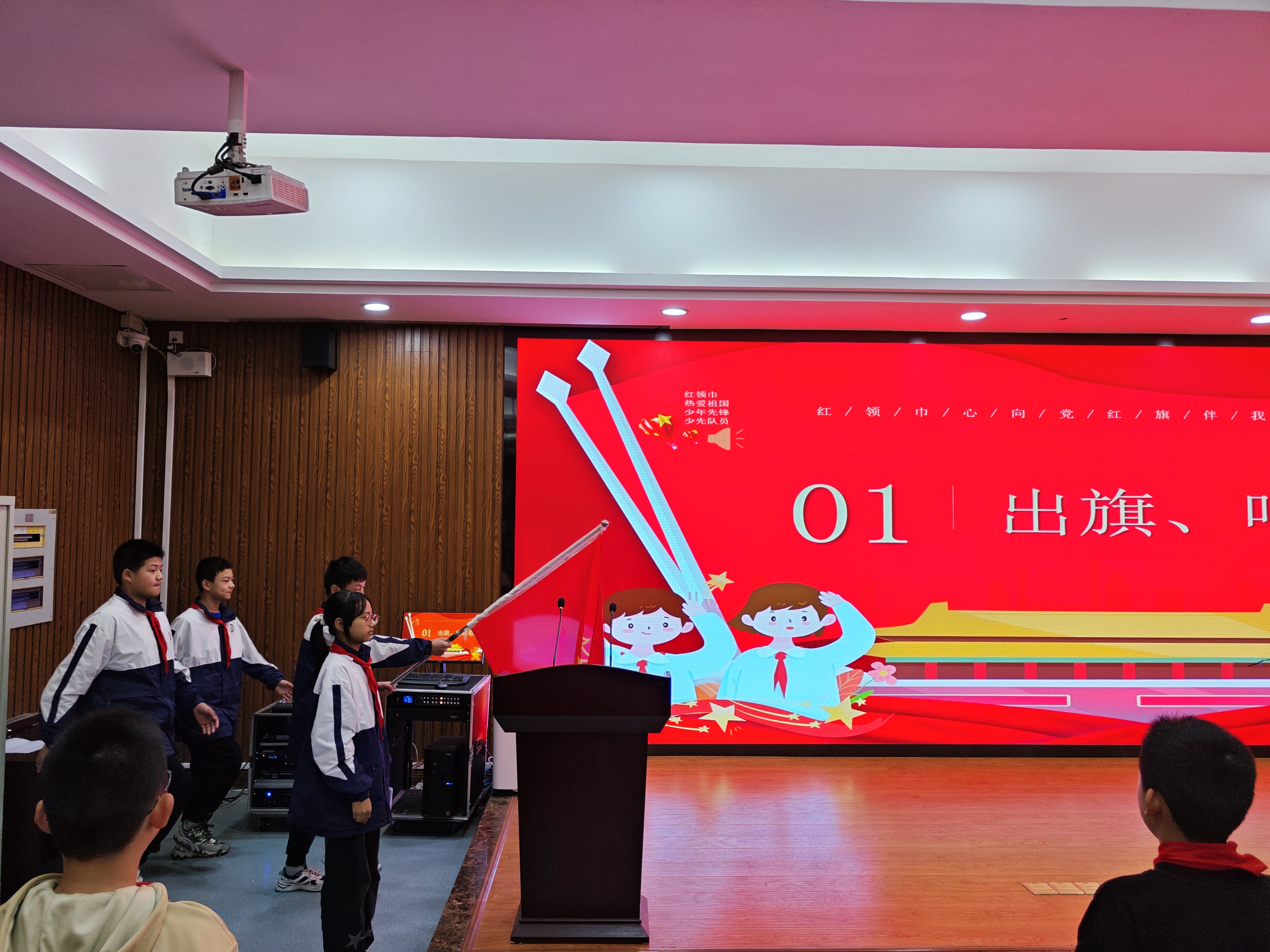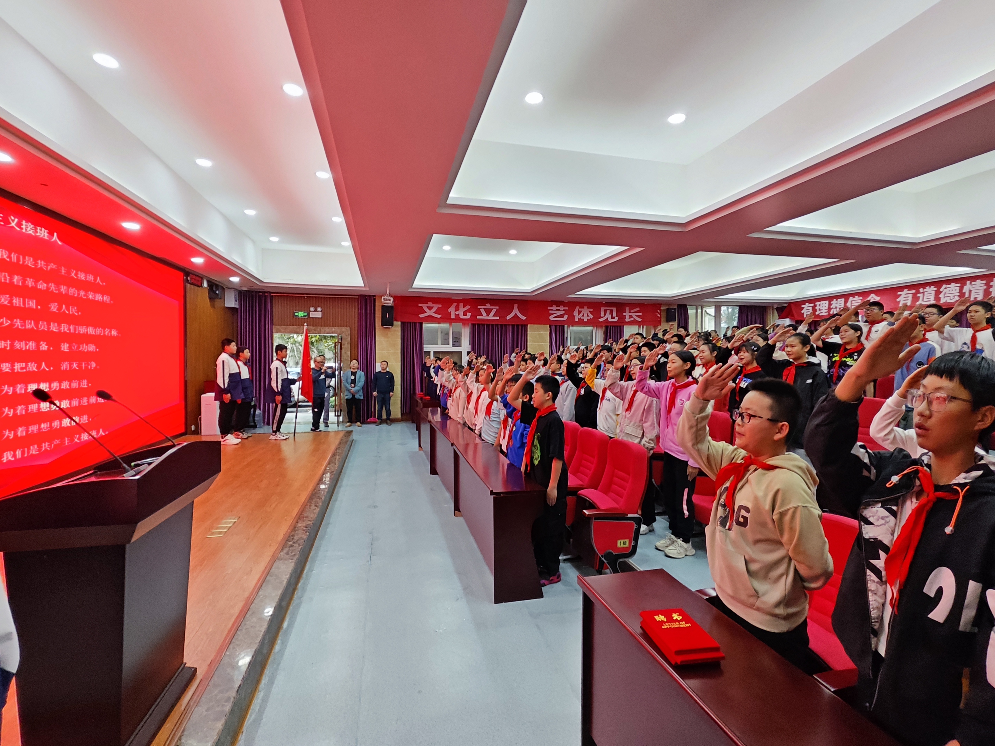 嘹亮的出旗曲响起,队员代表手擎队旗,昂首阔步向前,拉开了建队仪式的序幕。队员们胸前鲜艳的红领巾,标准的队礼,彰显了新一代青少年的良好风貌。