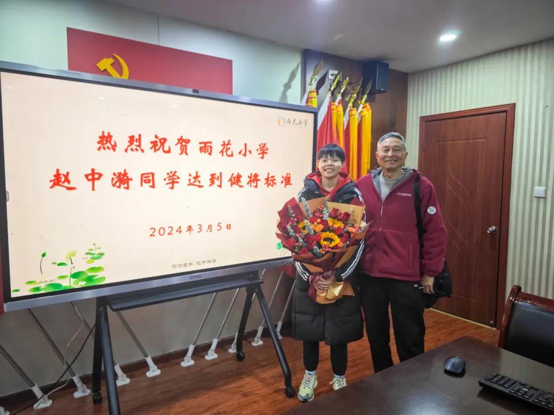 在3月1—4日举行的2024年全国春季游泳锦标赛中,江北区雨花小学学生赵中漪在女子1500米自由泳项目中游出17:11.24的成绩,达到国家健将标准!