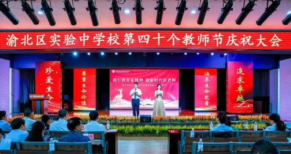 9月14日下午,重庆市渝北区实验中学校举行了第40个教师节庆祝暨表彰大会。此次活动通过表彰先进、师徒结对、光荣退休仪式及表彰四十年教龄老教师等多个环节展示教师风采,传递正能量,激励全体教职员工践行教育家精神,做新时代好老师!