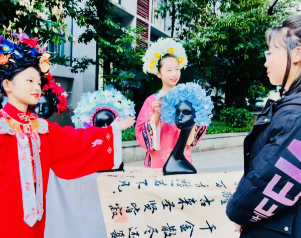 “簪花”、“簸箕画”、“玻璃画”……各个美轮美奂的学校艺术工坊展台,让孩子和家长们赞叹不已。在欣赏和体验美的情境过程中,孩子们不仅建立了对中华艺术文化的自豪感和自信心,更将传承和创新的火种点亮于心!