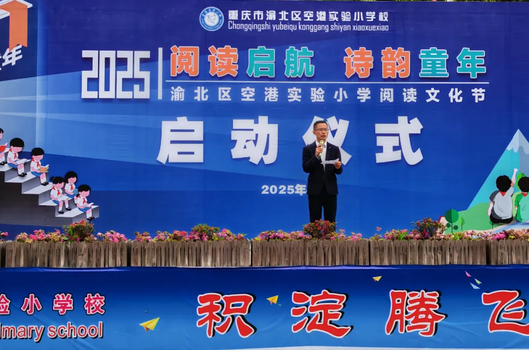 在春风送暖、书香弥漫的四月,重庆市渝北区空港实验小学迎来了“阅读启航,诗韵童年”2025年阅读文化节启动仪式。全校师生齐聚校园,共赴这场阅读盛宴,开启一段充满诗意与智慧的旅程。仪式在主持人唐启轩热情洋溢的开场中拉开帷幕。