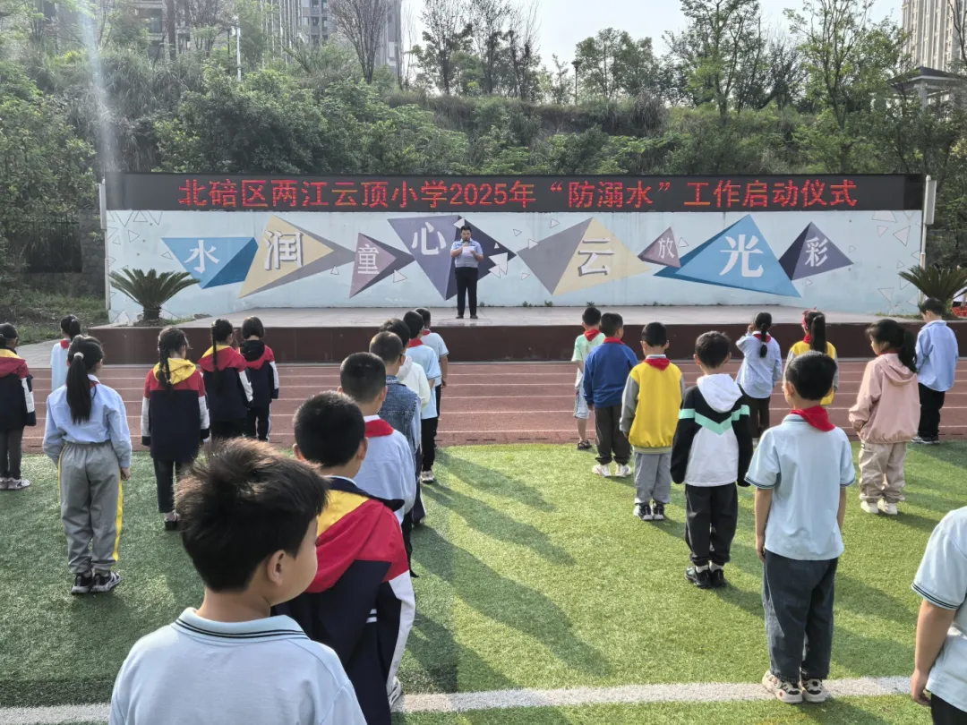 随着气温逐渐升高,溺水事故进入高发期。为切实增强全体师生的安全意识,有效预防学生溺水事故的发生,2025年4月28日,重庆市北碚区两江云顶小学举行了以“珍爱生命预防溺水”为主题的防溺水安全教育启动仪式,为全校师生敲响了防溺水的警钟。